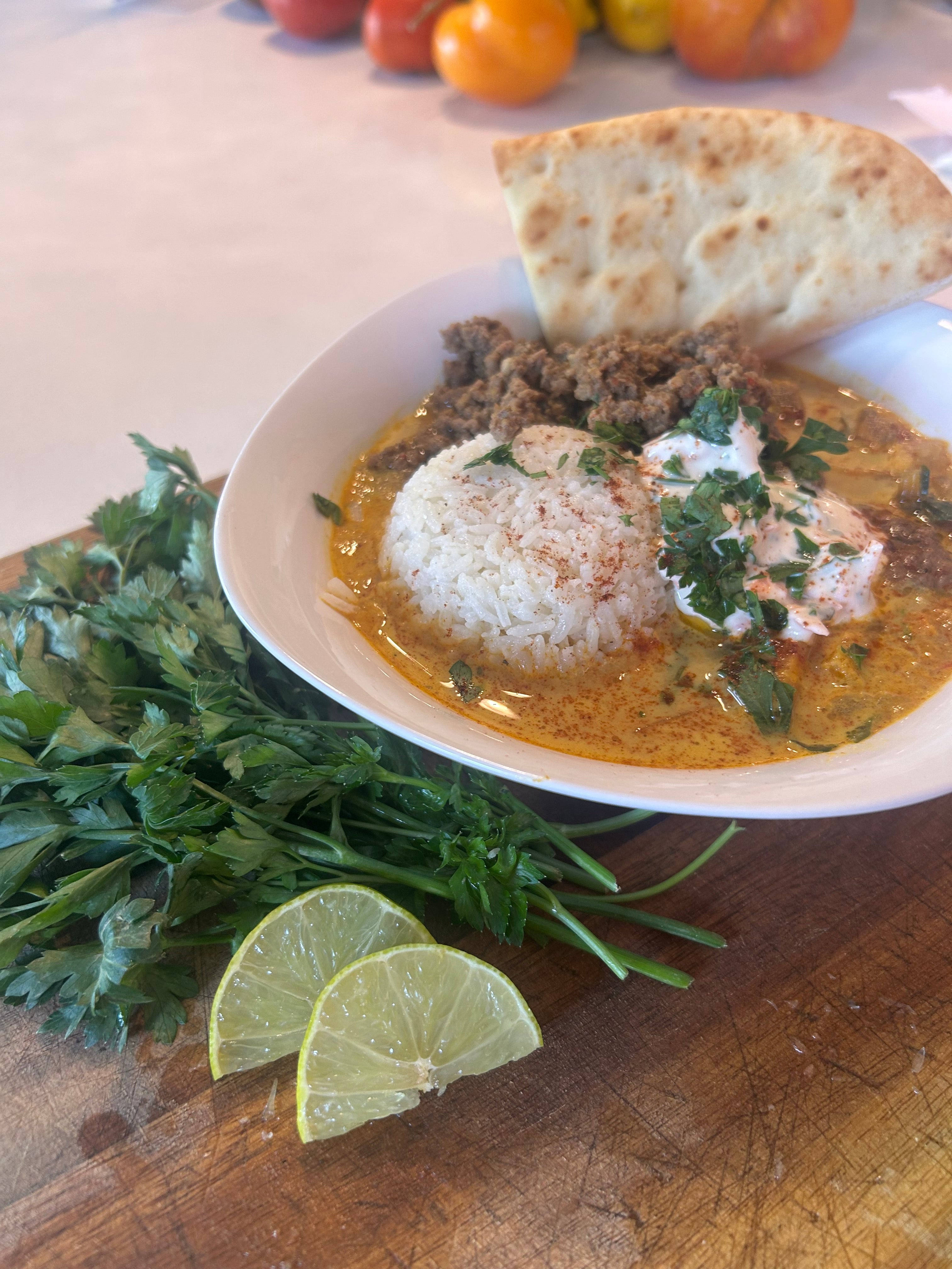 Meals are prepared using farm-fresh, mostly organic produce and ethically raised meats sourced from local, regenerative farms whenever possible. Ingredients are chosen with care for both nourishment and flavor, honoring the seasons and the farmers who grow our food. Every dish is made with intention, quality, and respect for where the food comes from.